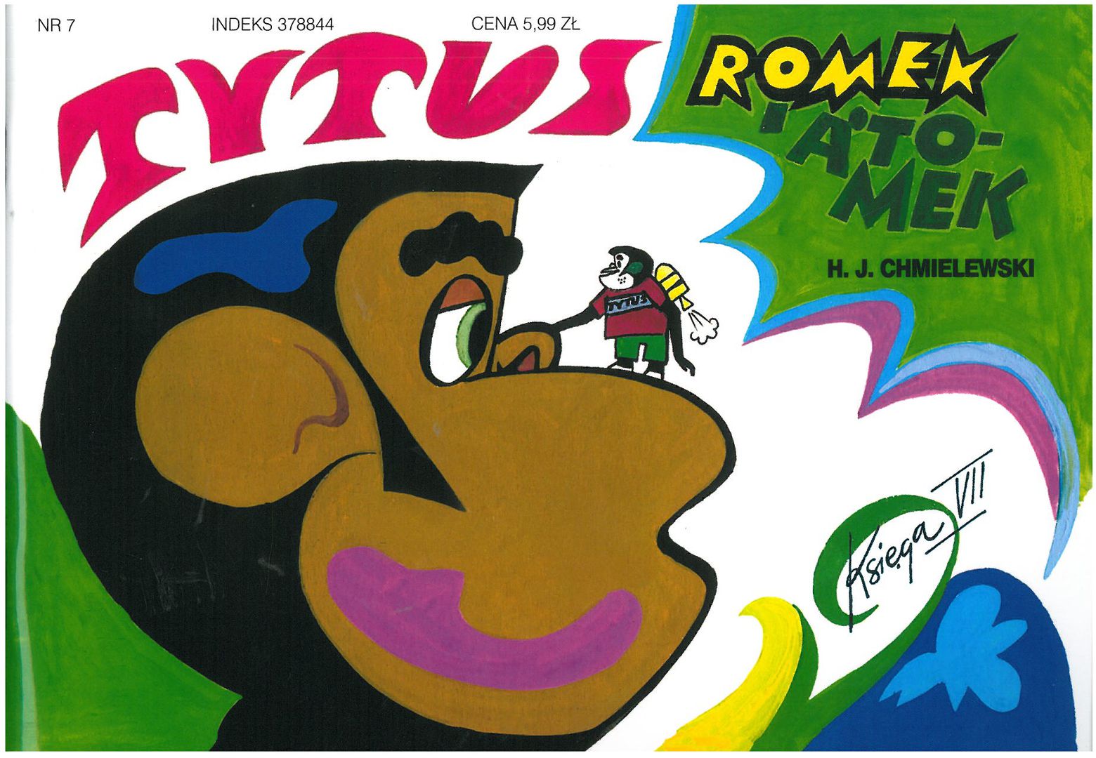 Tytus, Romek i A'Tomek. Księga VII / Henryk Jerzy Chmielewski. - Warszawa : Prószyński i S-ka, copyright 2009. - 56 stron : ilustracje (w tym kolorowe) ; 16x24 cm.