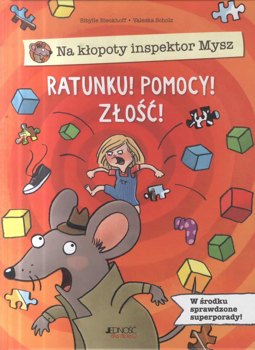 Inspektor Mysz to superbohater, który spieszy na pomoc wszystkim dzieciom! W tym tomiku zmierzy się z kapryśną złością, która potrafi dopaść każdą dziewczynkę i każdego chłopca i popsuć zabawę nawet najgrzeczniejszemu rodzeństwu. Dla inspektora Myszy to jednak nie problem! W mig poradzi sobie z podstępną złością i znów na twarze dzieci powróci wesoły uśmiech. Jeśli i wy chcecie pokonać złość, koniecznie zaprzyjaźnijcie się z inspektorem Myszą i przeczytajcie tę świetną książkę!