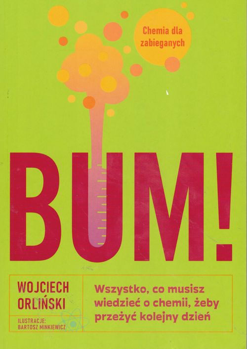 Które elektrony mogłyby korzystać z Tindera? Dlaczego nie myjemy się już piaskiem i popiołem? Po co chemia dawnym królom i współczesnym politykom? I czy kiedykolwiek przyda się nam ona w życiu? Jeśli, tak samo jak pierwsi alchemicy, błądzisz po omacku… Coś tam wiesz, ale tablica Mendelejewa jest w twojej głowie wciąż niekompletna… Z dzieciństwa pamiętasz, że połączenie proszku do pieczenia i wody powoduje wybuch, ale nie wiesz, skąd się bierze to całe BUM... Wróćmy do podstaw chemii i w końcu poznajmy ją dobrze. Wojciech Orliński – nietuzinkowy nauczyciel chemii i badacz popkultury – tłumaczy wszystko, co musisz wiedzieć by przeżyć kolejny dzień, albo zdać maturę. Chemia jest w końcu wszędzie. Spotkamy ją zwiedzając Akropol, oglądając filmy o Jamesie Bondzie i słuchając piosenek Kurta Cobaina. Bez chemii nie ma życia i – jak się okazuje – nie ma też popkultury. Wystarczy poczytać Stanisława Lema i obejrzeć Breaking Bad. BUM! to książka dla wszystkich, którzy byli (lub wciąż są) znudzonymi chemią uczniami. Po tej lekturze będziecie jak wodór – nie przestaniecie rozglądać się za jakąś reakcją chemiczną. ZAMIAST PODRĘCZNIKOWYCH WYKŁADÓW – WYBUCHOWA MIESZANKA NAJCIEKAWSZEJ WIEDZY.