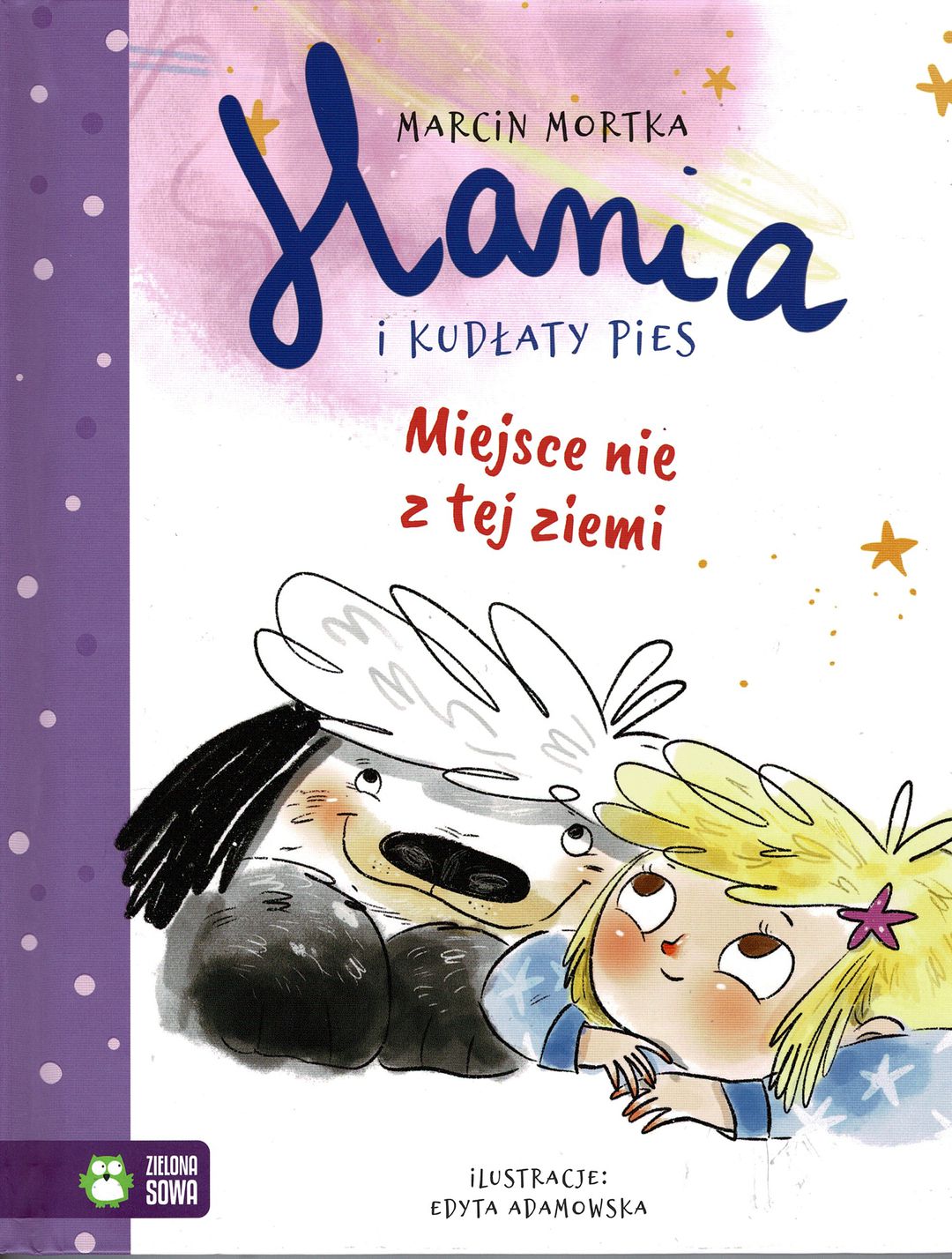 Hania i Kudłaty Pies , Miejsce nie z tej ziemi / Marcin Mortka ; ilustracje Edyta Adamowska. - Wydanie I. - Warszawa : Wydawnictwo Zielona Sowa, copyright 2023. - 78, [1] strona : ilustracje kolorowe ; 23 cm.