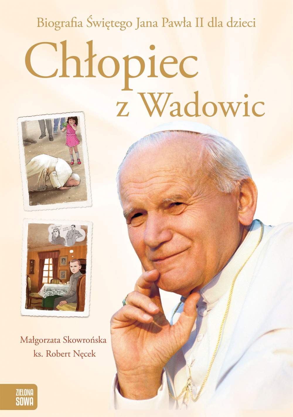 "Chłopiec z Wadowic. Biografia błogosławionego Jana Pawła II dla dzieci" to obowiązkowa pozycja dla wszystkich dzieci, które chciałyby się dowiedzieć, jak to się stało, że zwyczajny chłopiec został papieżem. Książka zawiera najważniejsze fakty z życia Jana Pawła II, opisane przystępnym językiem, bogate nie tylko w anegdoty i zabawne historie, ale też w ciekawostki i fakty historyczne, które pozwalają zrozumieć postać wielkiego Polaka i jego epokę. Każdy odcinek tej pasjonującej i bogato ilustrowanej historii skomponowany jest według podobnego schematu: - tekst beletryzowanej biografii - ukazuje Jana Pawła II jako zwykłego, pełnego ciepła człowieka, który potrafił łączyć aktywne życie (sport, podróże, przyjaźnie, poezja, teatr itp.) z prawdziwie chrześcijańskimi wartościami; postać wyłaniająca się z tej opowieści to święty, który nie stoi na piedestale, ale jest taki jak my, przez co jego przykład przemawia tym wyraźniej do dziecięcego odbiorcy i skłania do naśladowania - ramki faktograficzne - w nienachalny dla najmłodszych czytelników sposób porządkujące wiedzę o historycznym i kulturowym tle biografii papieża-Polaka - "kazanie" do dzieci ks. Roberta Nęcka związane z tematem danego odcinka i nauczaniem Jana Pawła II. Książkę polecamy też rodzicom, którzy chcieliby przypomnieć sobie biografię Jana Pawła II: publikacja zawiera dodatek dla starszych czytelników ("Ściąga dla rodziców"): kalendarium życia papieża, wykaz tytułów jego encyklik i adhortacji. Książkę honorowym patronatem objął Ks. Kardynał Stanisław Dziwisz.