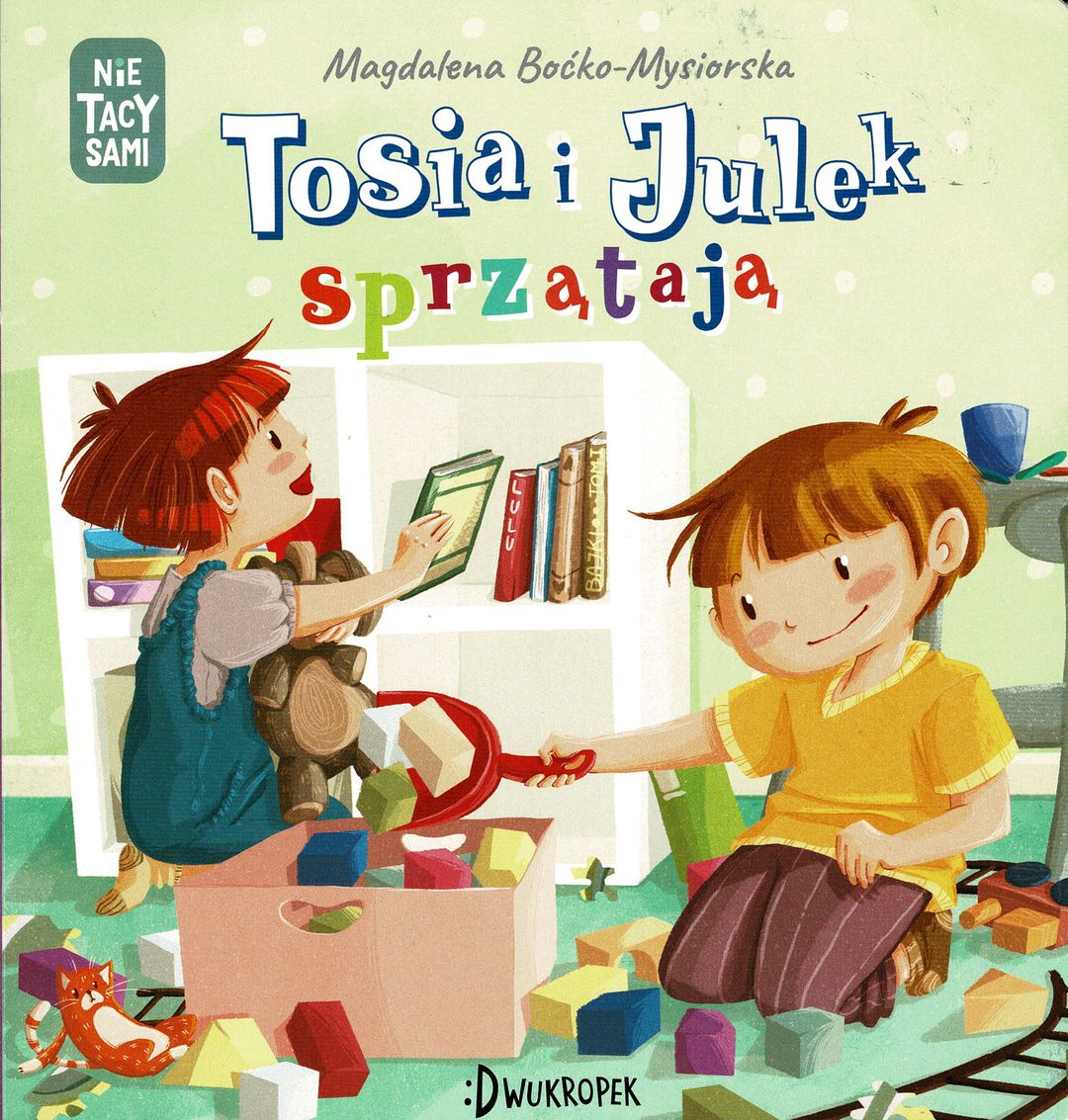 Tosia i Julek sprzątają / Magdalena Boćko-Mysiorska ; [ilustracje: Dorota Prończuk]. - [Warszawa] : :Dwukropek, copyright 2023. - [18] stron : ilustracje ; 20 cm.